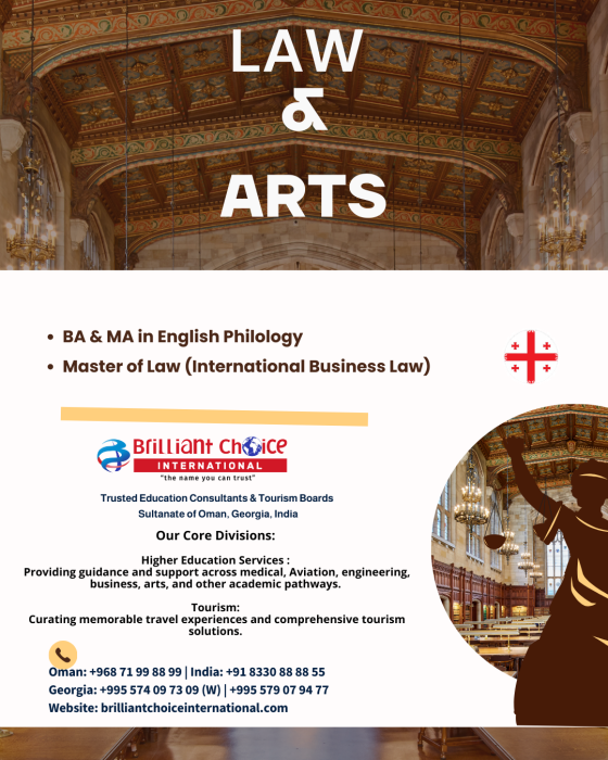 Arts & Law Leave a Comment / Blog / By Brilliantchoice International BA & MA in English Philology Master of Law (International Business Law)